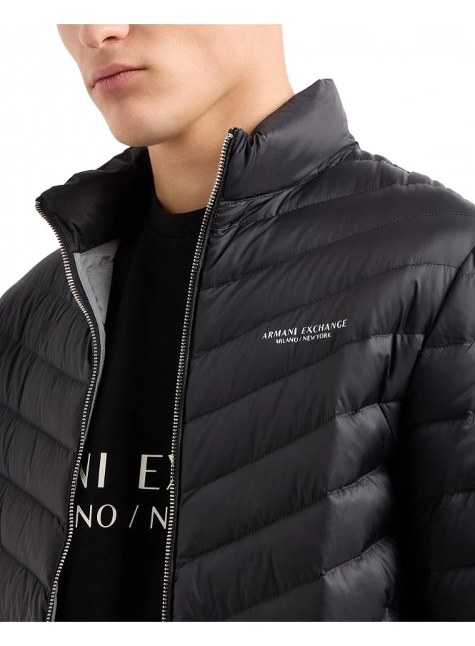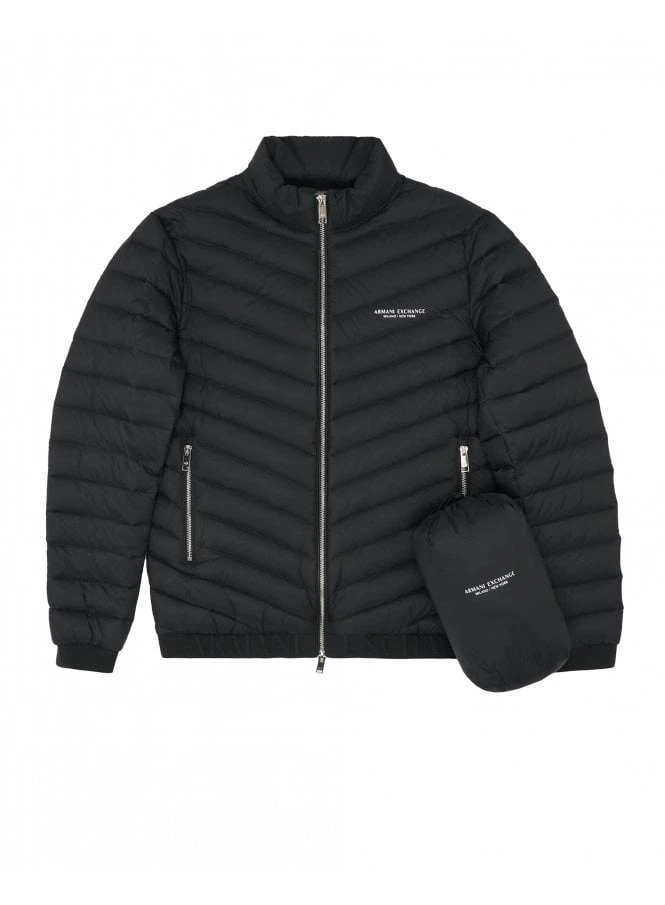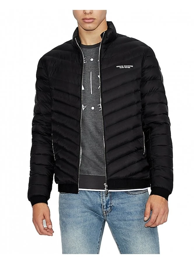 Featuring the iconic Armani Exchange logo on the chest, this jacket exudes timeless sophistication. The turtleneck collar and long sleeves provide additional protection from the elements, while the two pockets offer convenient storage for your essentials.