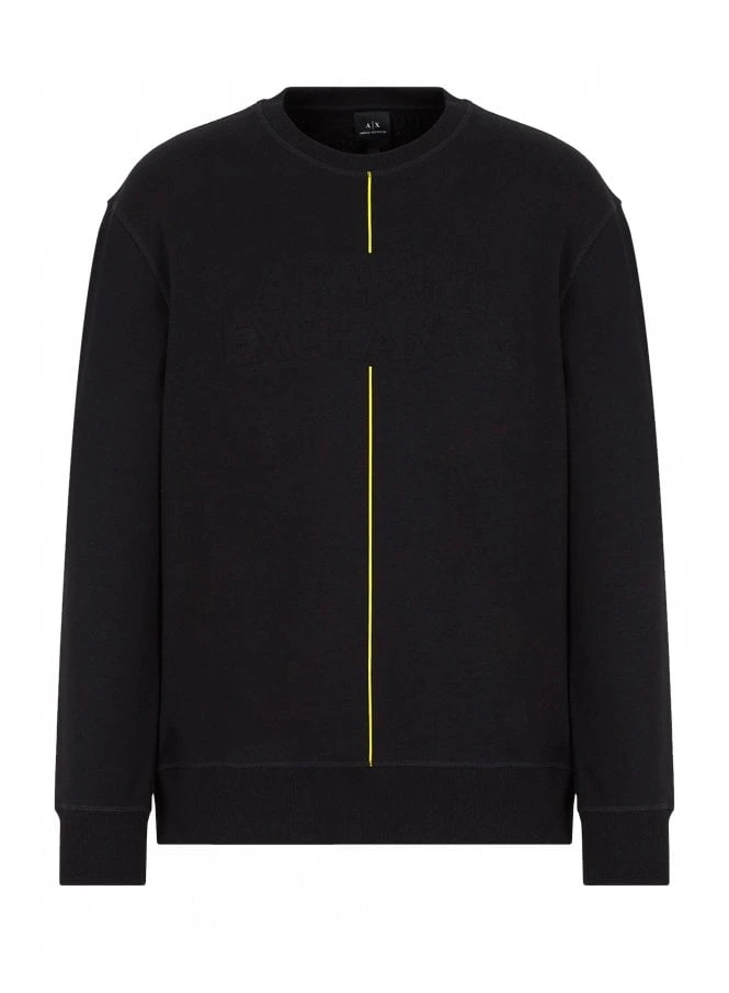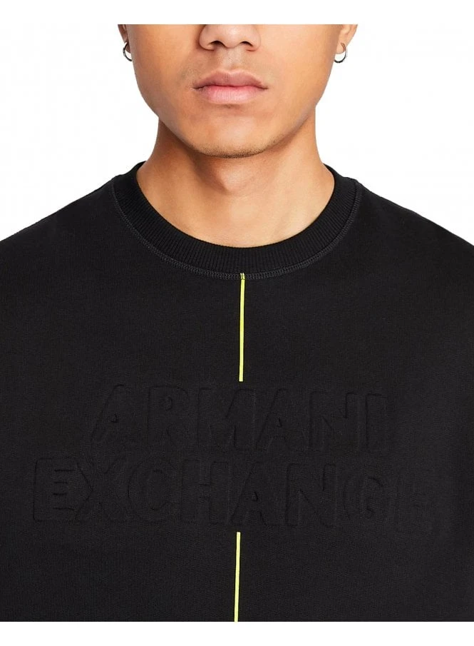 Armani Exchange all black organic cotton sweatshirt featuring yellow accent and embossed logo
