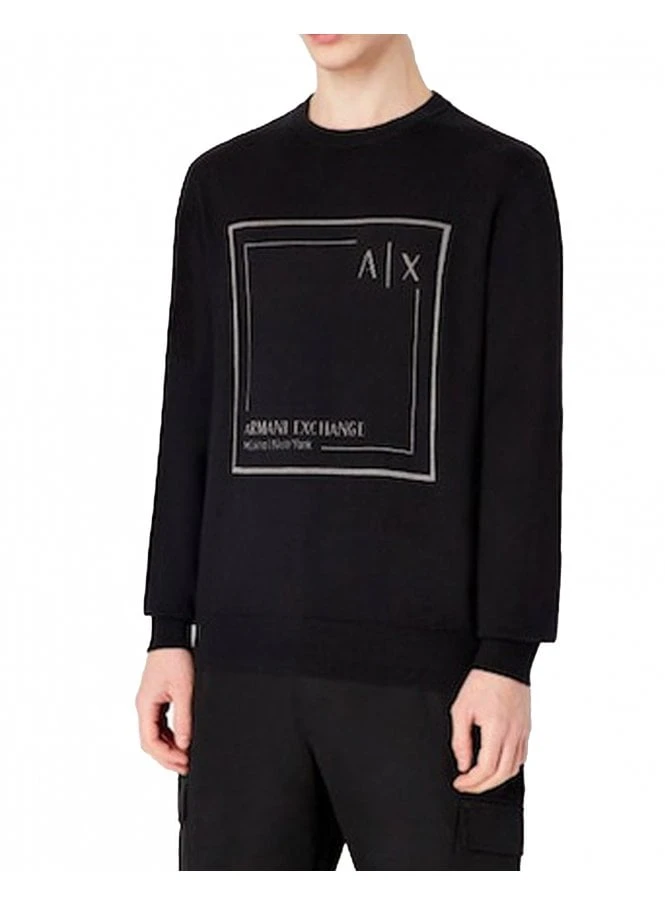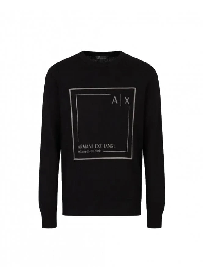 Crew-neck sweater in soft cotton and cashmere blend fabric with jacquard box logo on the front