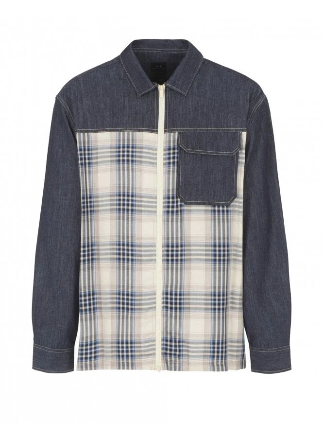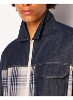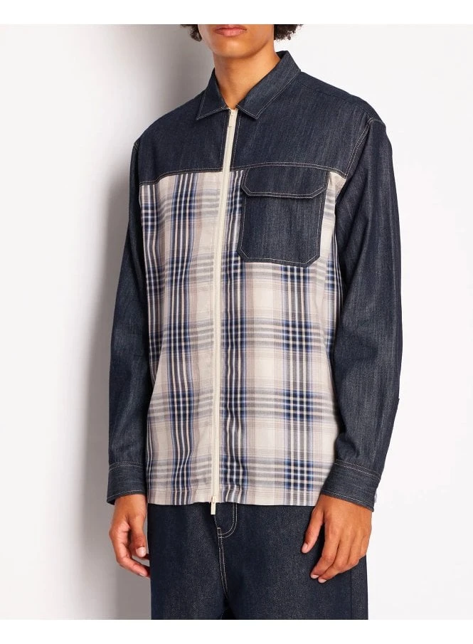 A casual shirt made of twill with a maxi check pattern insert in tonal colors. The model has a classic collar and values.