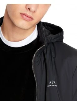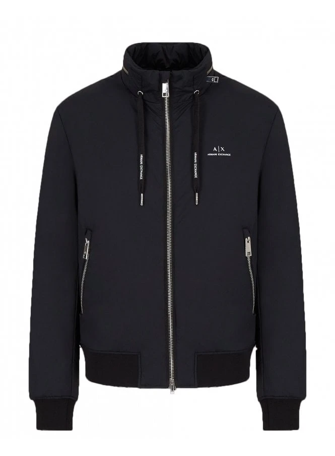 Armani Exchange A|X Blouson jacket in Black featuring A|X logo, full zip and hidden hood