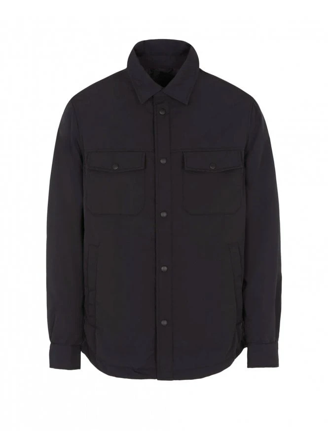 Armani Exchange contemporary lines and urban attitude for this laminated nylon blouson with value closure and collar.