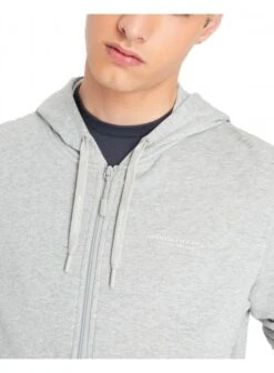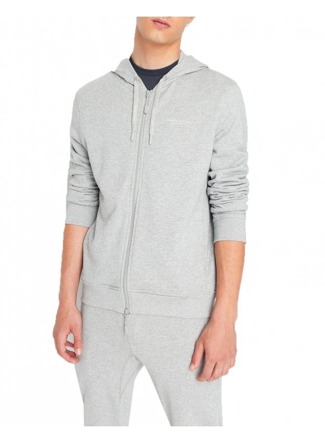Armani Exchange core colour hoodie featuring branded drawstring, full zip and logo on chest