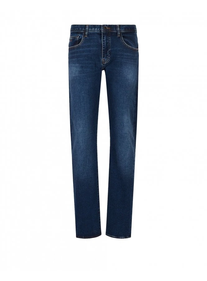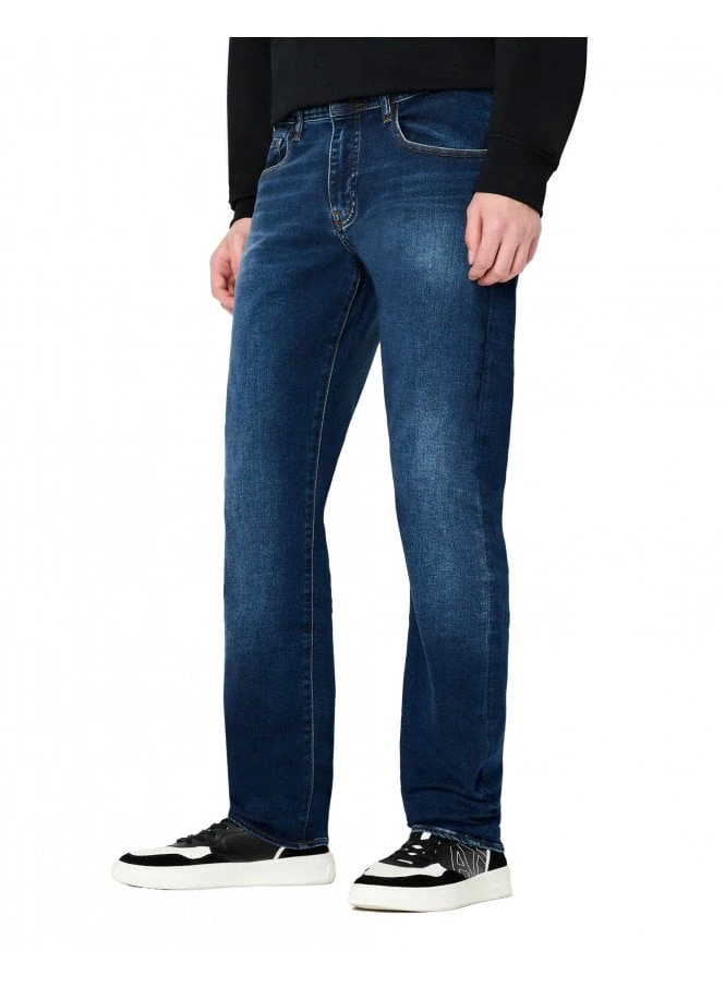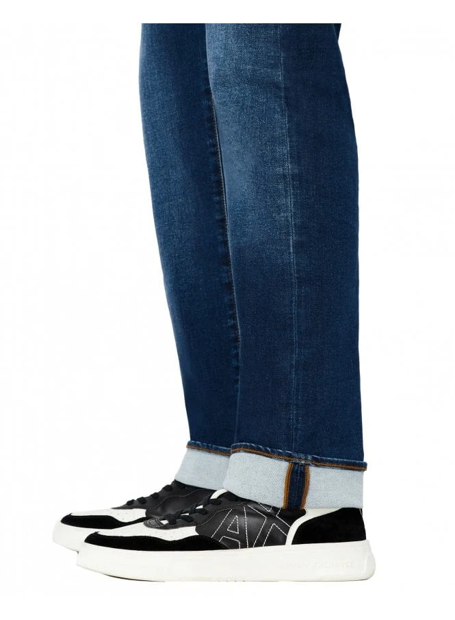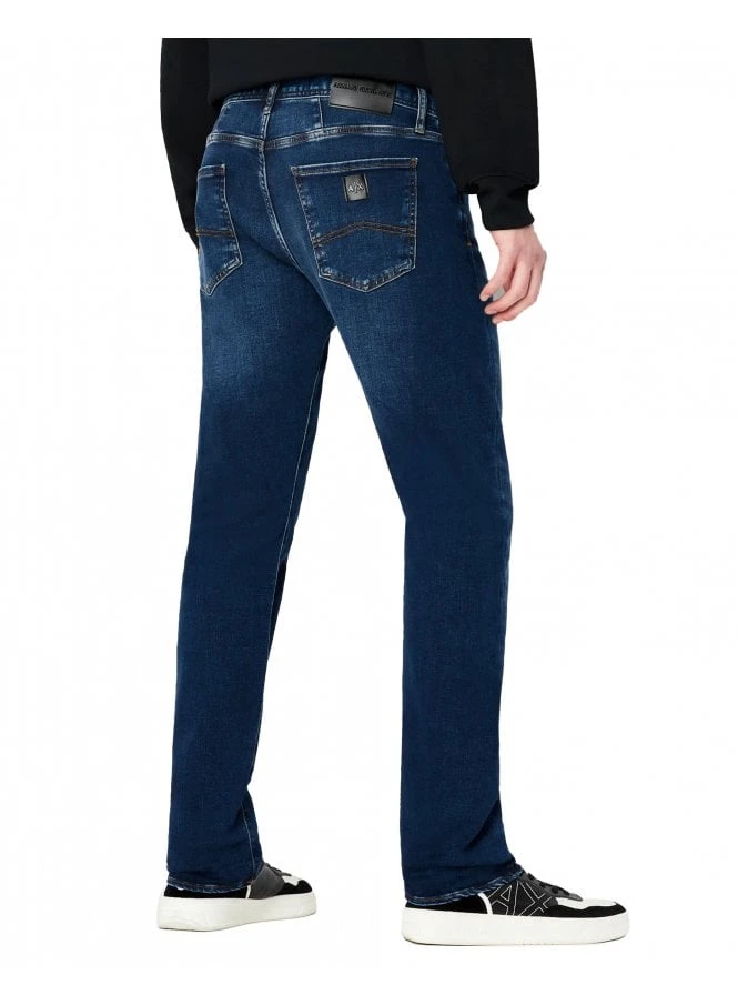 Armani Exchange slim fit jean featuring stretch, 5 pockets, metal branding.