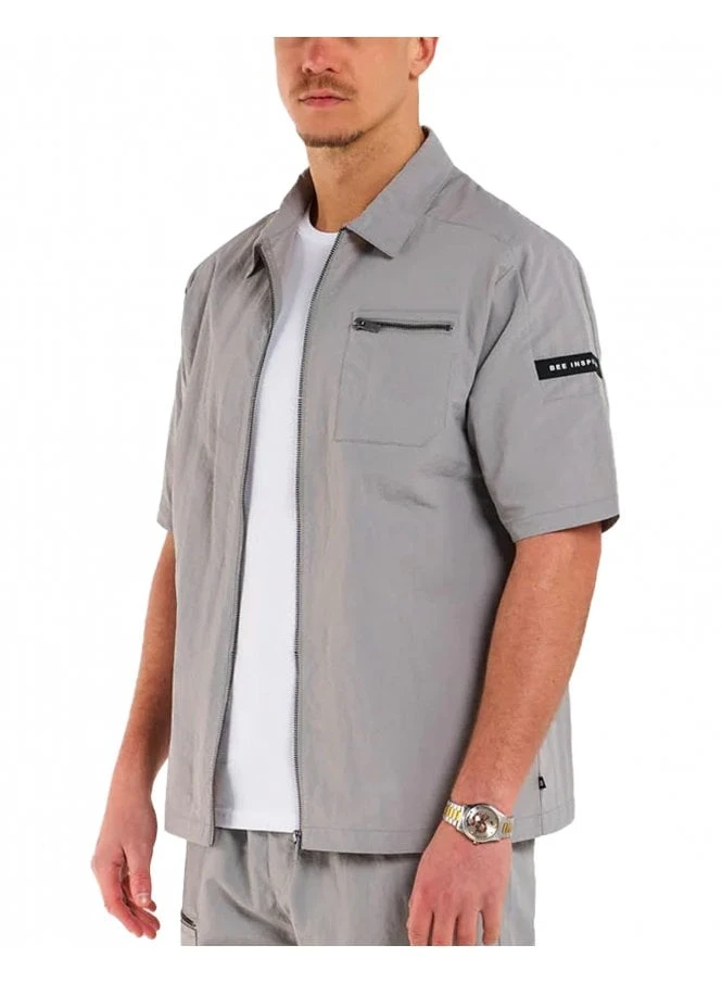 Introducing the Hanley Overshirt in light grey. This front zip shirt features a chest pocket with zip detailing and sleeve branding. The B pip adds a touch of style at the side seam. Stay comfortable and stylish with this versatile overshirt in a relaxed fit.