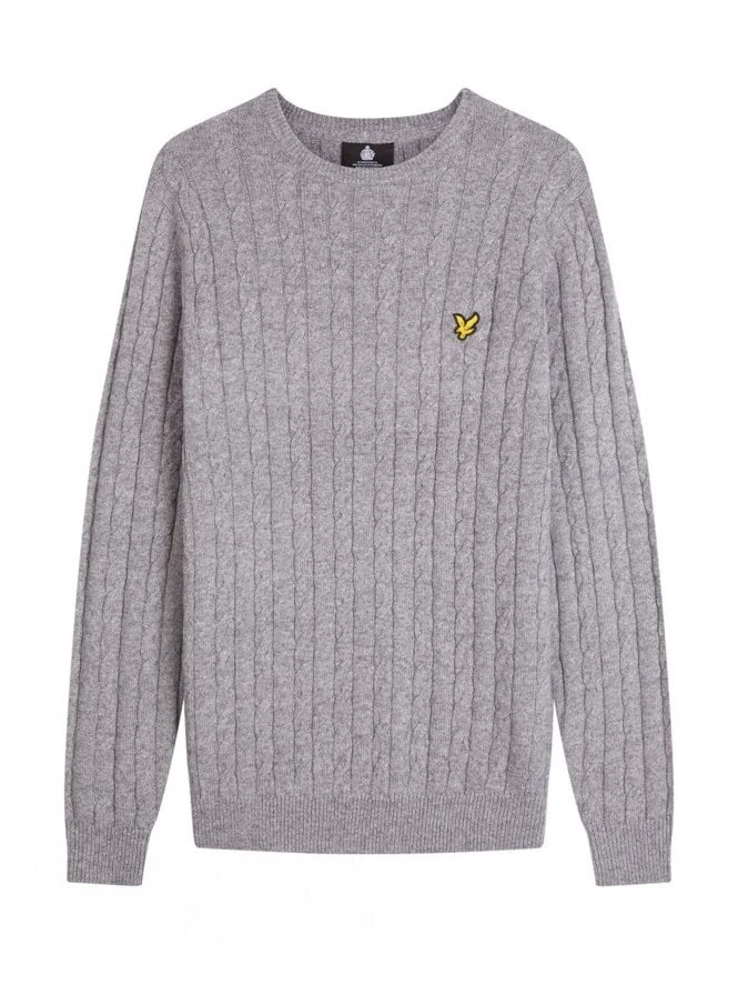 The Lyle and Scott Cable Knit Jumper in Mid Grey Marl features a cable knit design, the branded Eagle on the chest and is a lightweight but warm material.