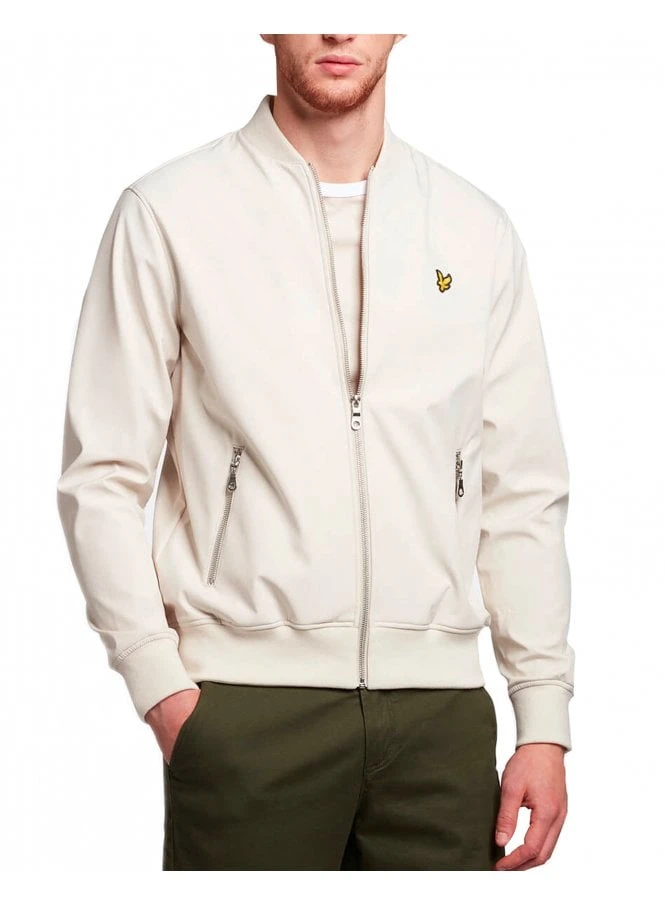Lyle & Scott Softshell Bomber Jacket Light Mist featuring the iconic golden eagle,zip pockets and full zip closure