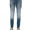 Slim fit jeans with regular waist and tapered leg for a comfort fit. With an authentic look, the garment is made of 11,5 oz 360° PET recycled black overdyed Hyperflex reform blue stretch cotton denim with a stonewashed medium dark wash tone. The five pocket item is characterized by the enzyme treatment which creates contrasting colours on used areas. Zip and value fly.