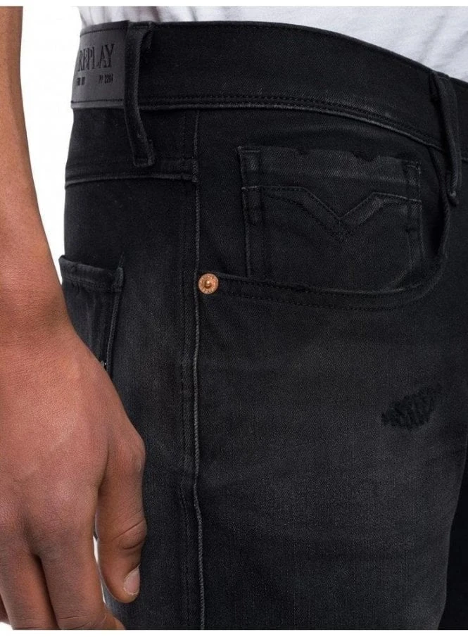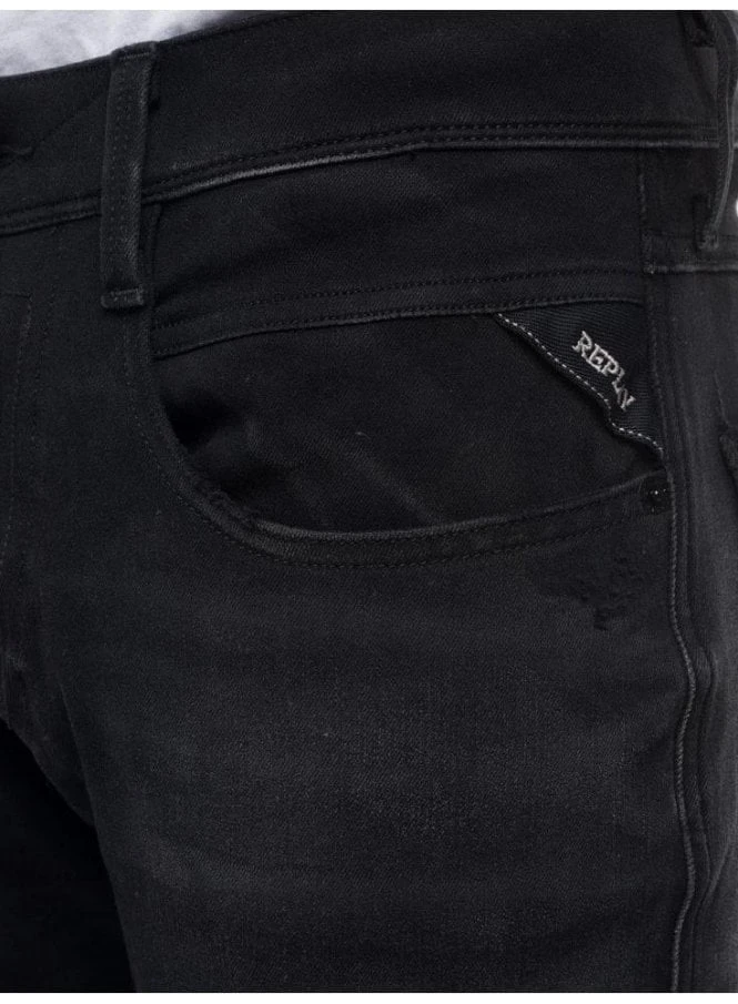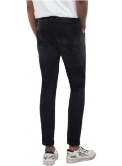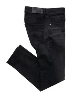 Men’s slim fit Hyperflex+™ jeans 12oz, with black tone wash, with handmade abrasions and whiskers, light contrasts and used areas, final 3D mannequin dry. Perfect for all events. With the fantastic technology these jeans stretch both ways which means they are even more comfortable and have an authentic denim feel.