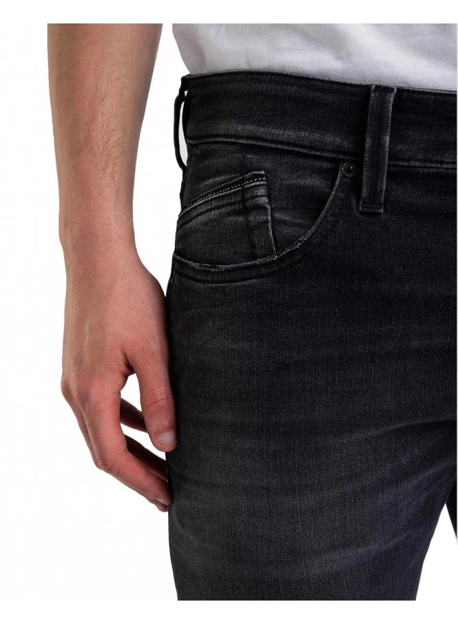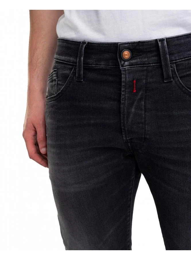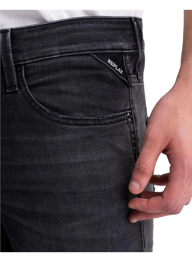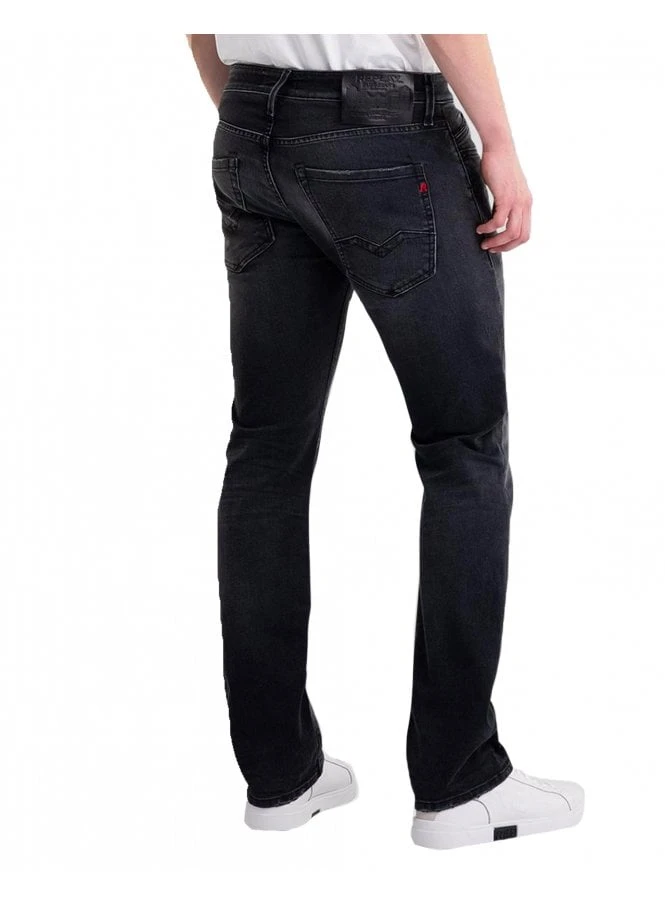 Replay 573 Bio Regular waist straight leg jean made from organic cotton with stretch in wash black look