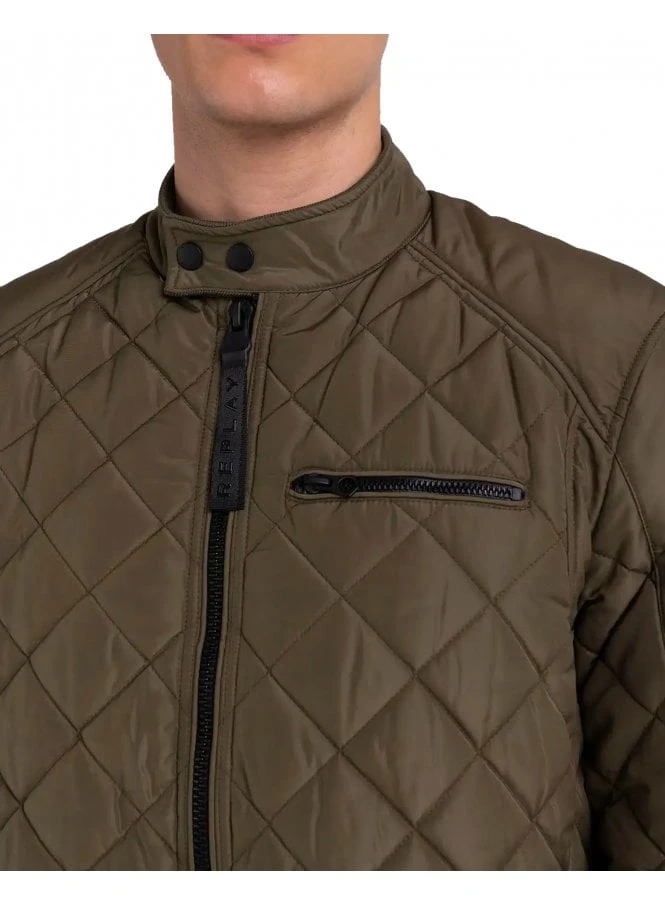 Short jacket made of oxford poly with diamond quilting. With regular fit, the garment is refined by soft stitchings on the shoulders and on the sleeves. The item is enhanced by the zipped pockets and by the diamond-shaped logo on the sleeve. Full zipper fastening with double press studs on the collar.